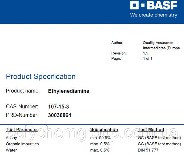 Етилендіамін BASF (ЕДА), CAS 107-15-3, (180 кг)